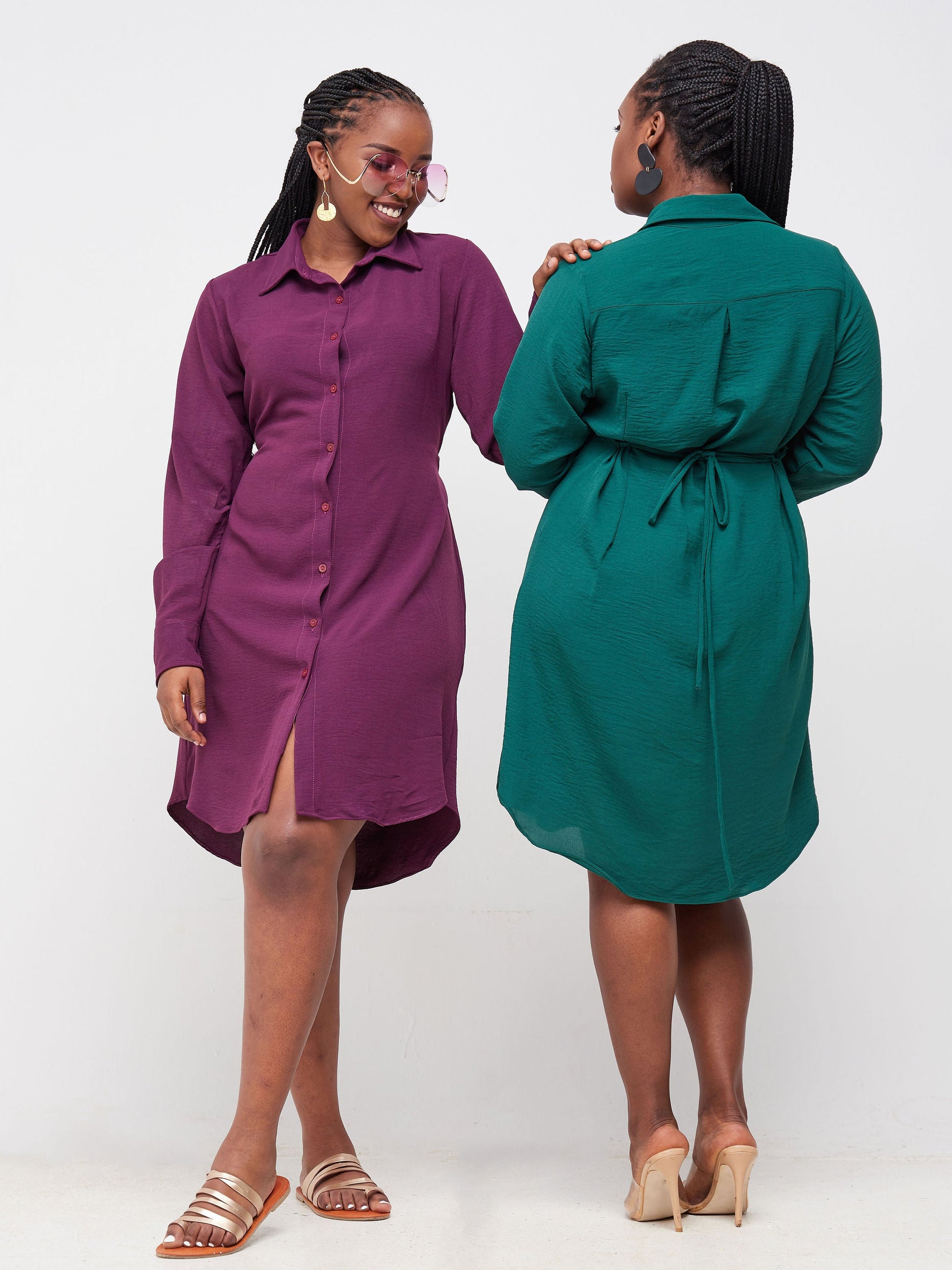 Vivo Tunu Long Sleeve Knee Length Shirt Dress - Green