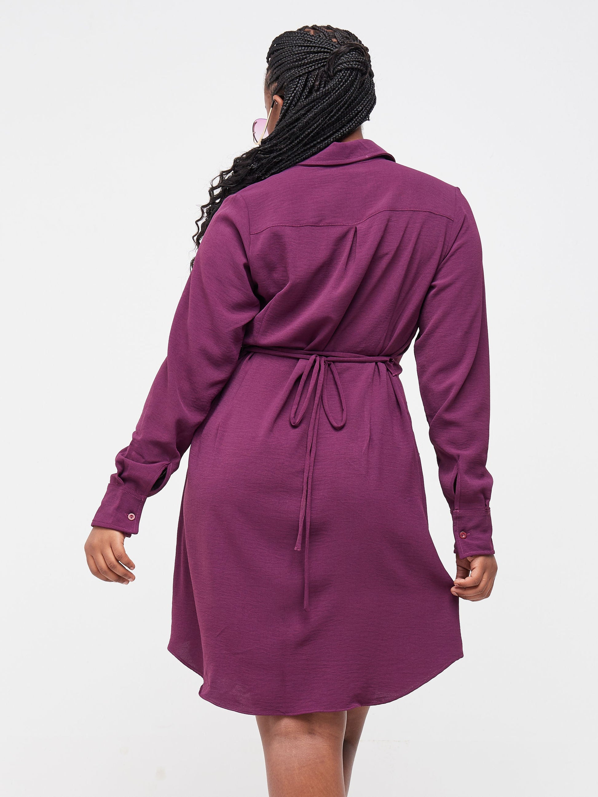 Vivo Tunu Long Sleeve Knee Length Shirt Dress - Purple