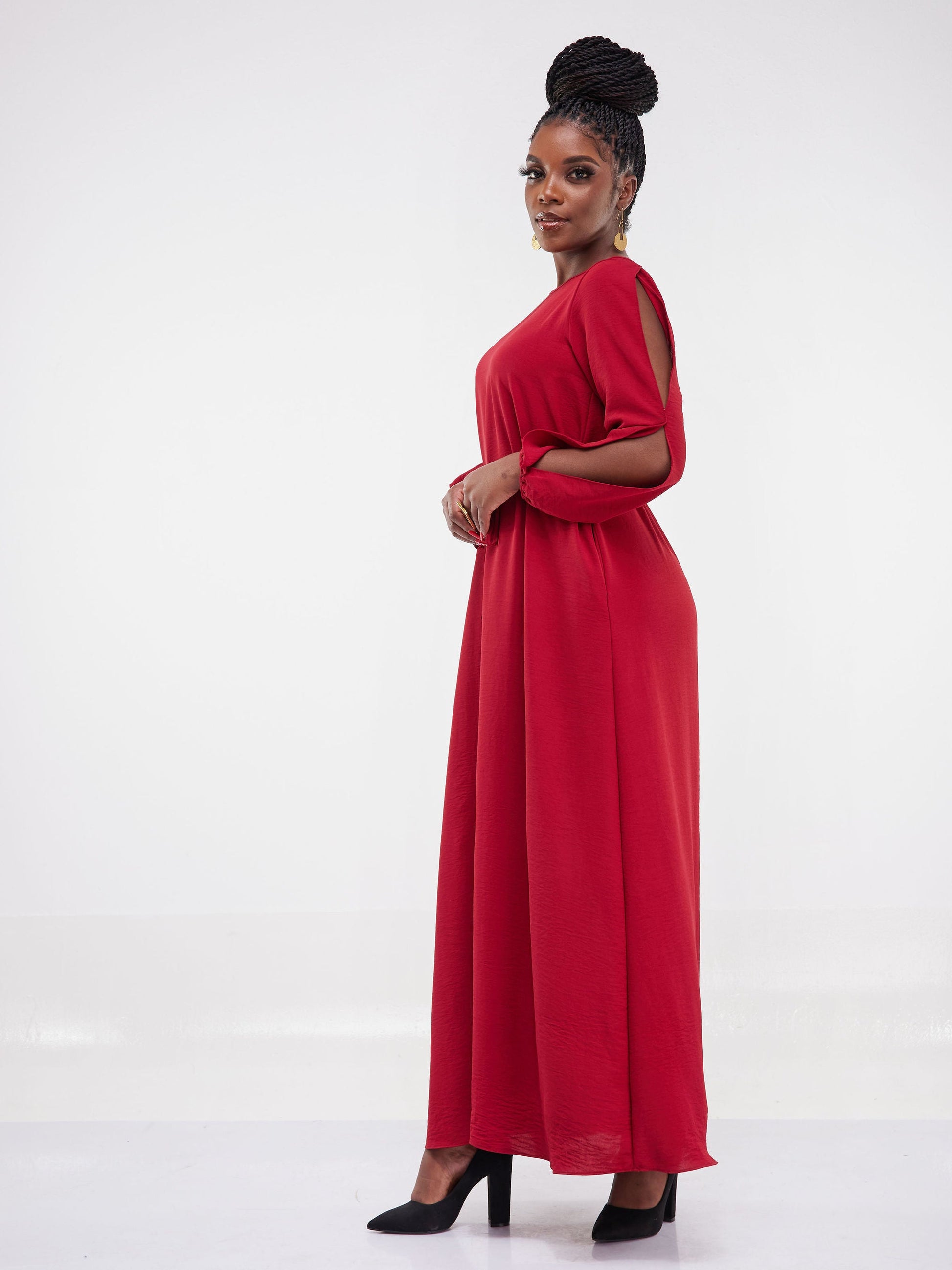 Vivo Tunu Long Slit Sleeve Tent Maxi Dress - Dark Red
