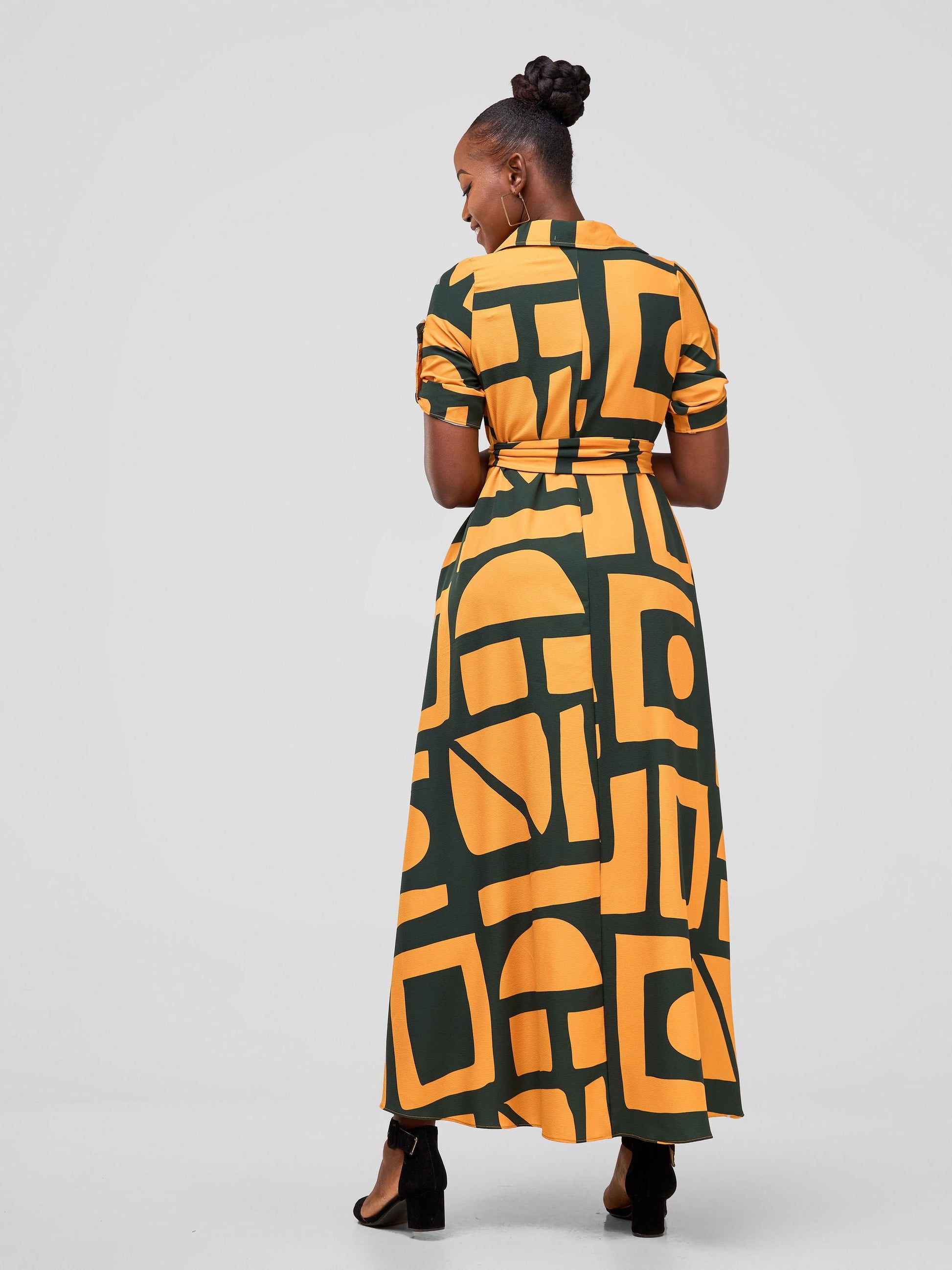 Vivo Yumi Maxi Shirt Dress - Hunters/Mustard Meza Print