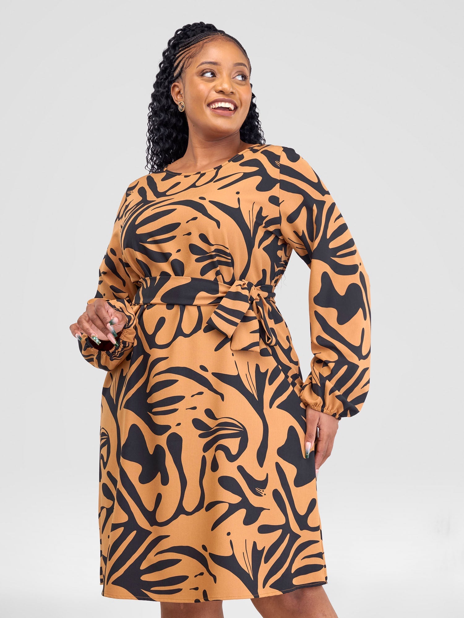 Introducing our chic casual shift dress, designed for effortless style and comfort. This versatile piece features elegant bishop sleeves for a touch of sophistication, while the included belt cinches the waist for a flattering silhouette. Perfect for any occasion, whether it's a relaxed day out or a casual evening gathering.