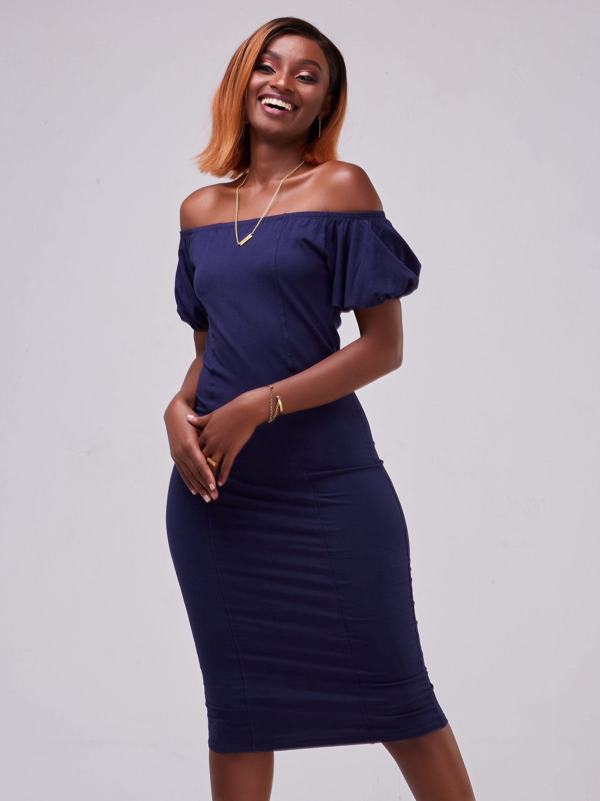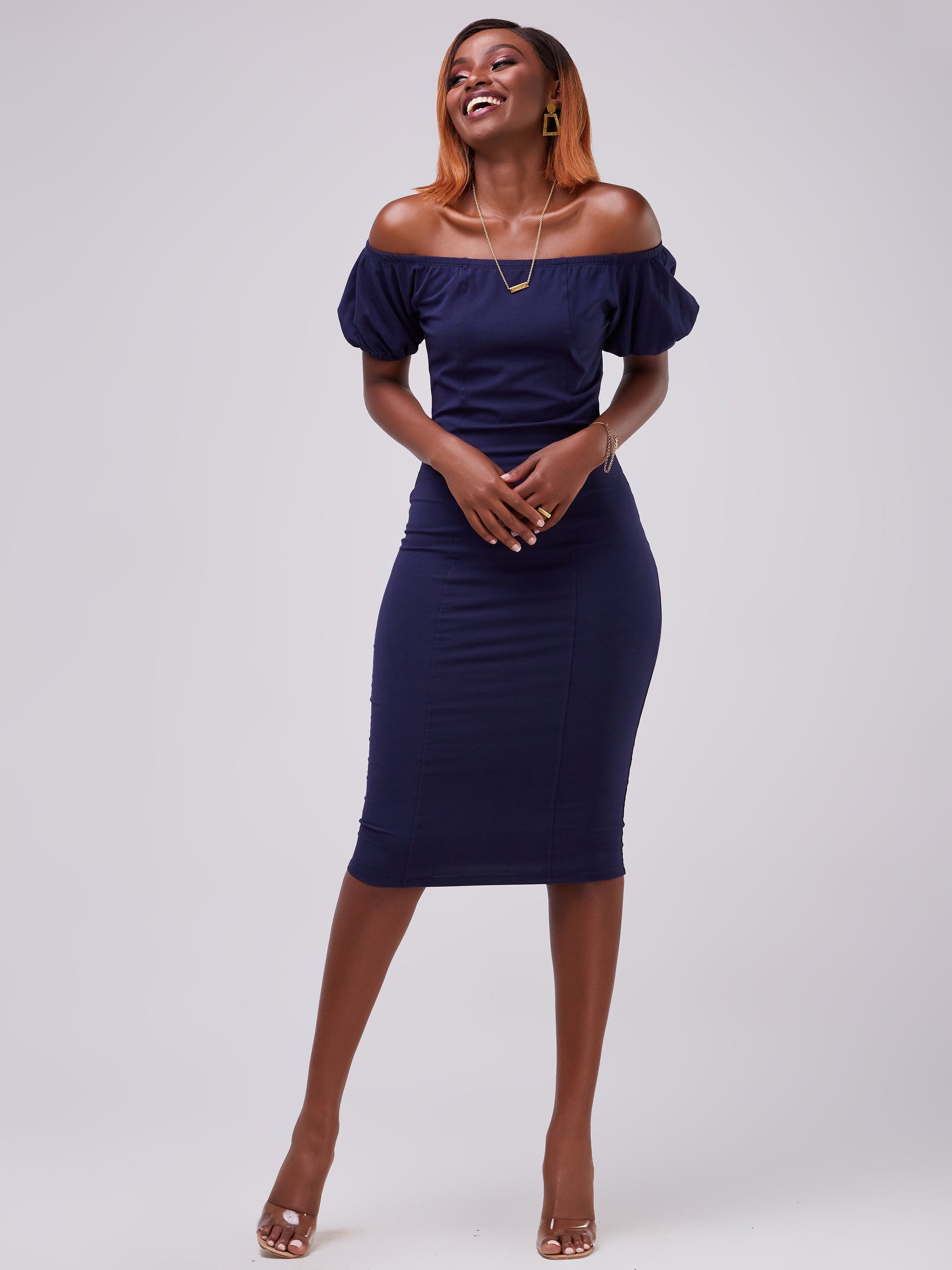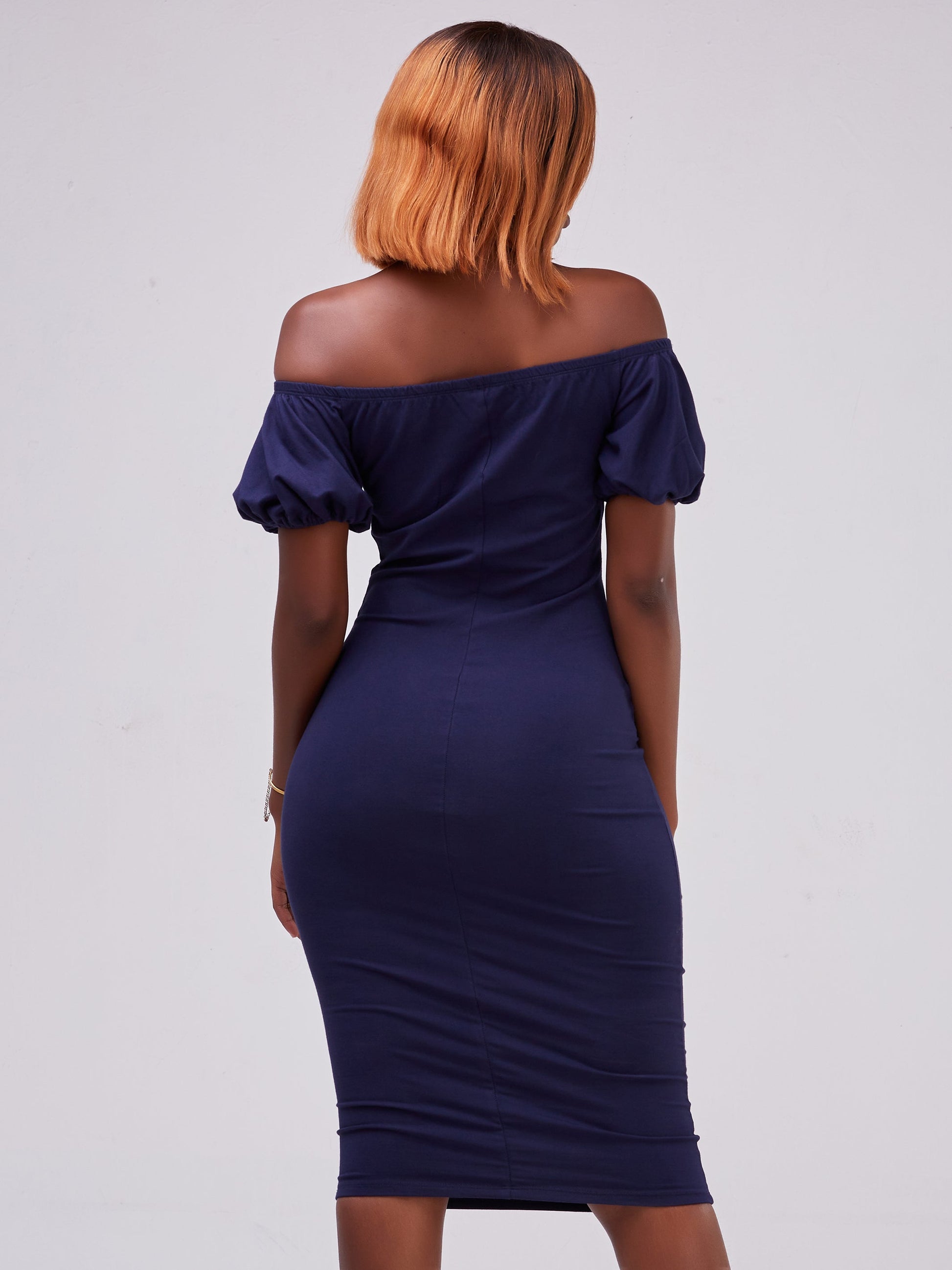 Vivo Zari Puff Sleeve Bodycon - Navy Blue
