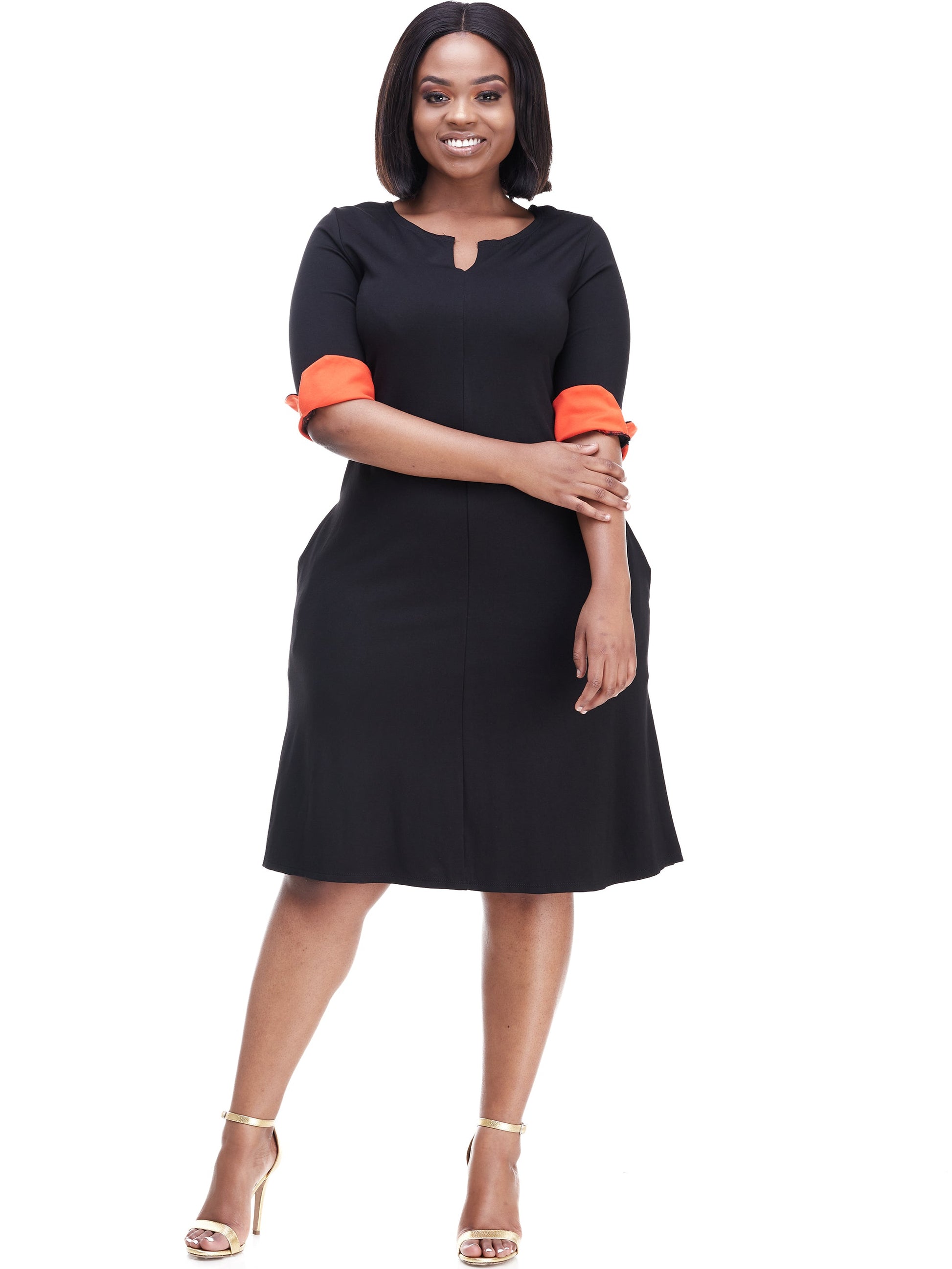 Vivo Zawadi Keyhole Dress - Black / Orange