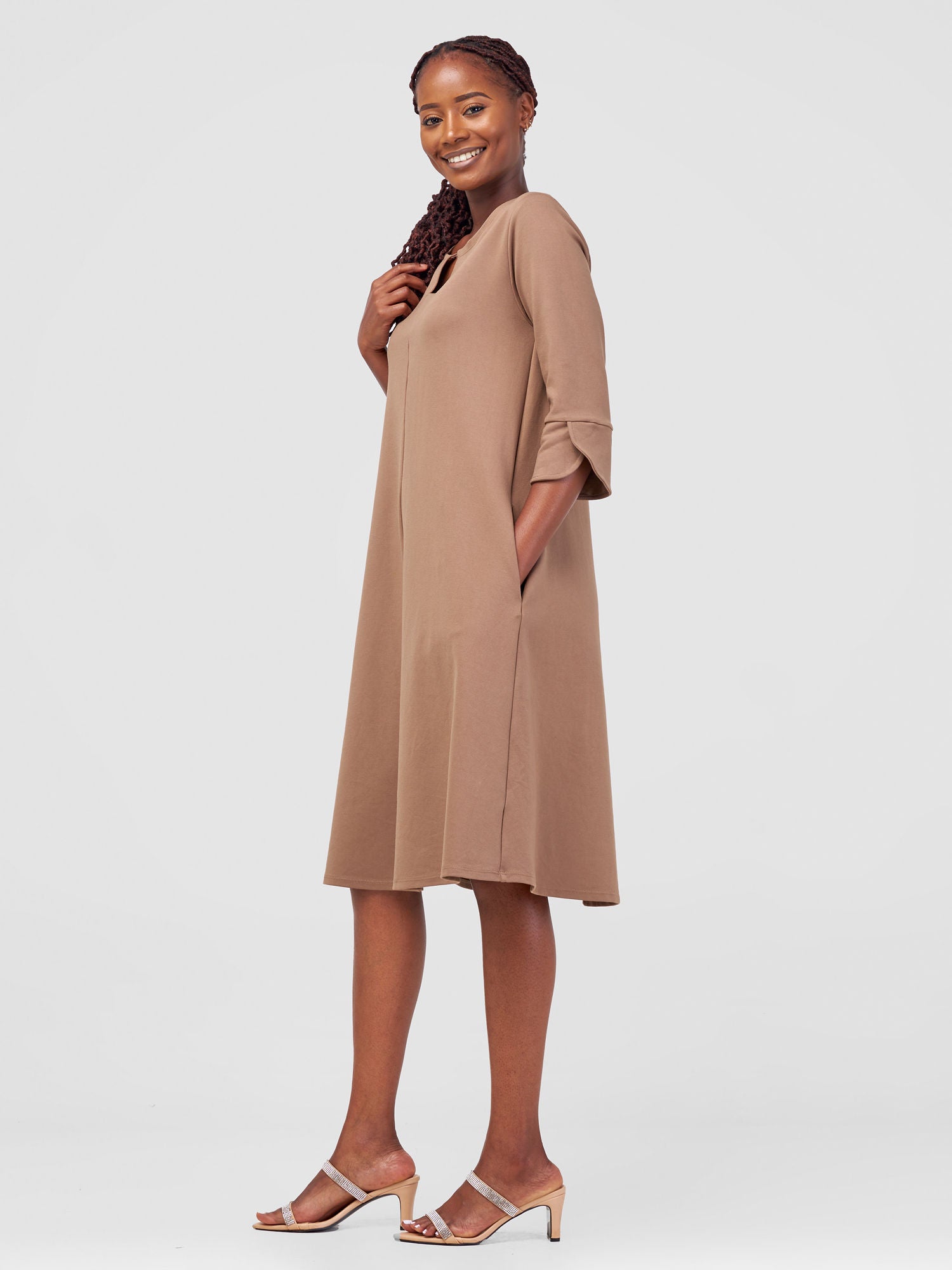 Vivo Zawadi Keyhole Dress - Taupe