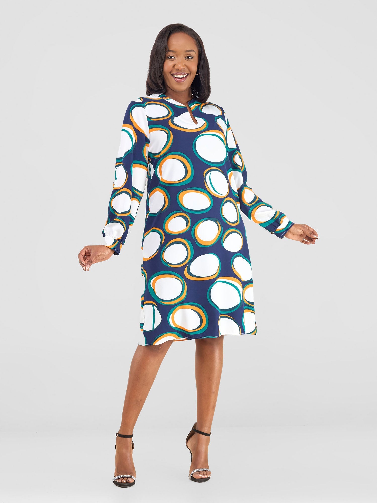 - Name: Vivo Zena Long Sleeve Mandarin Collar Shift Dress