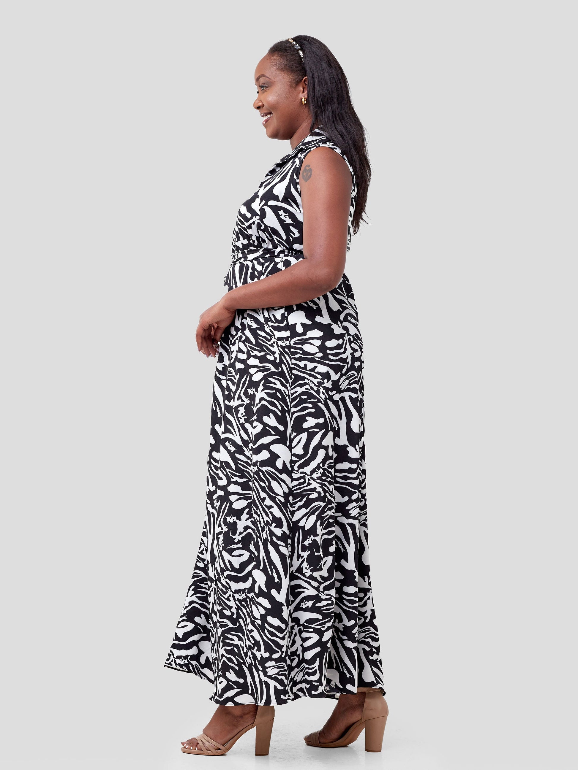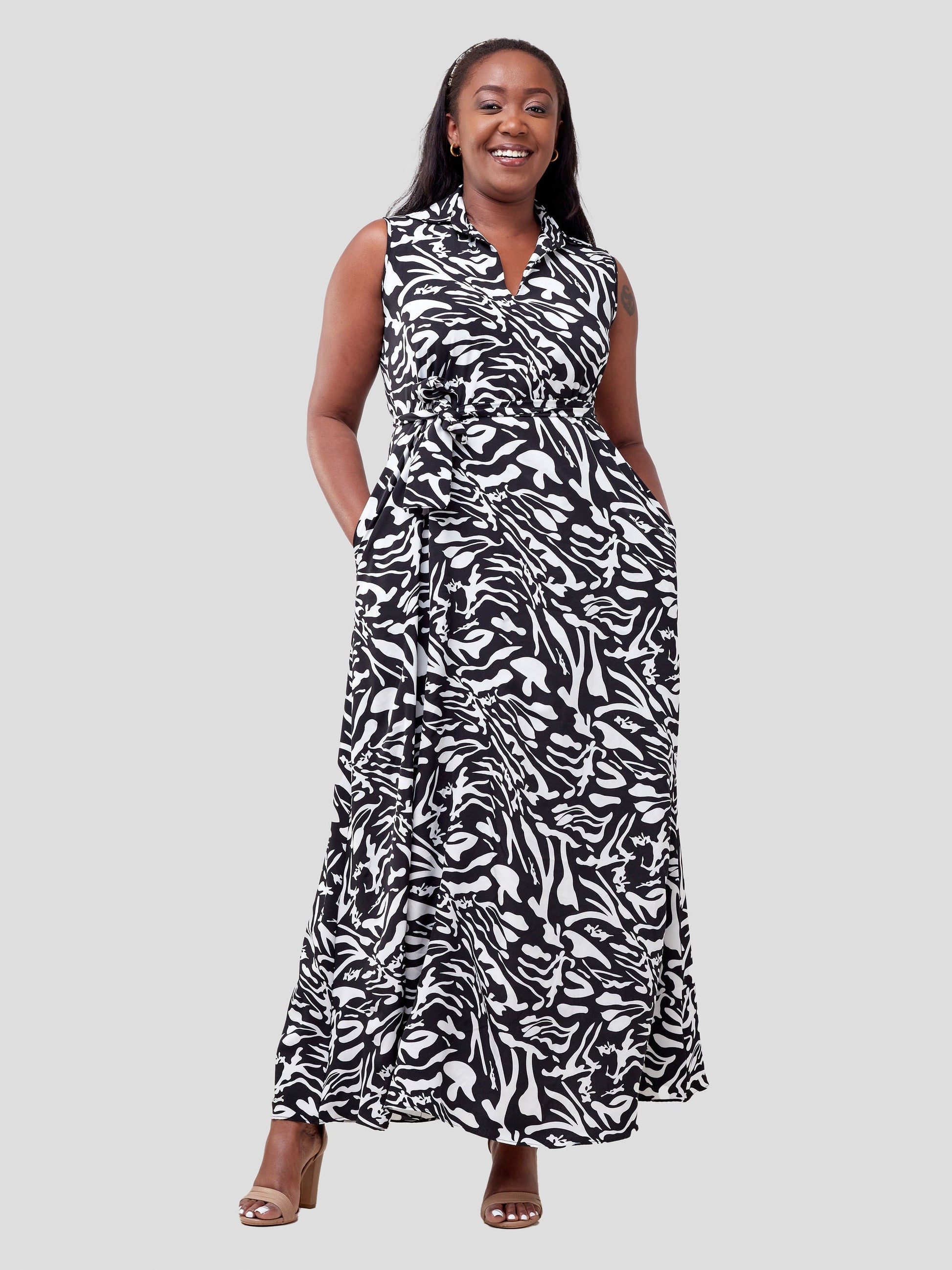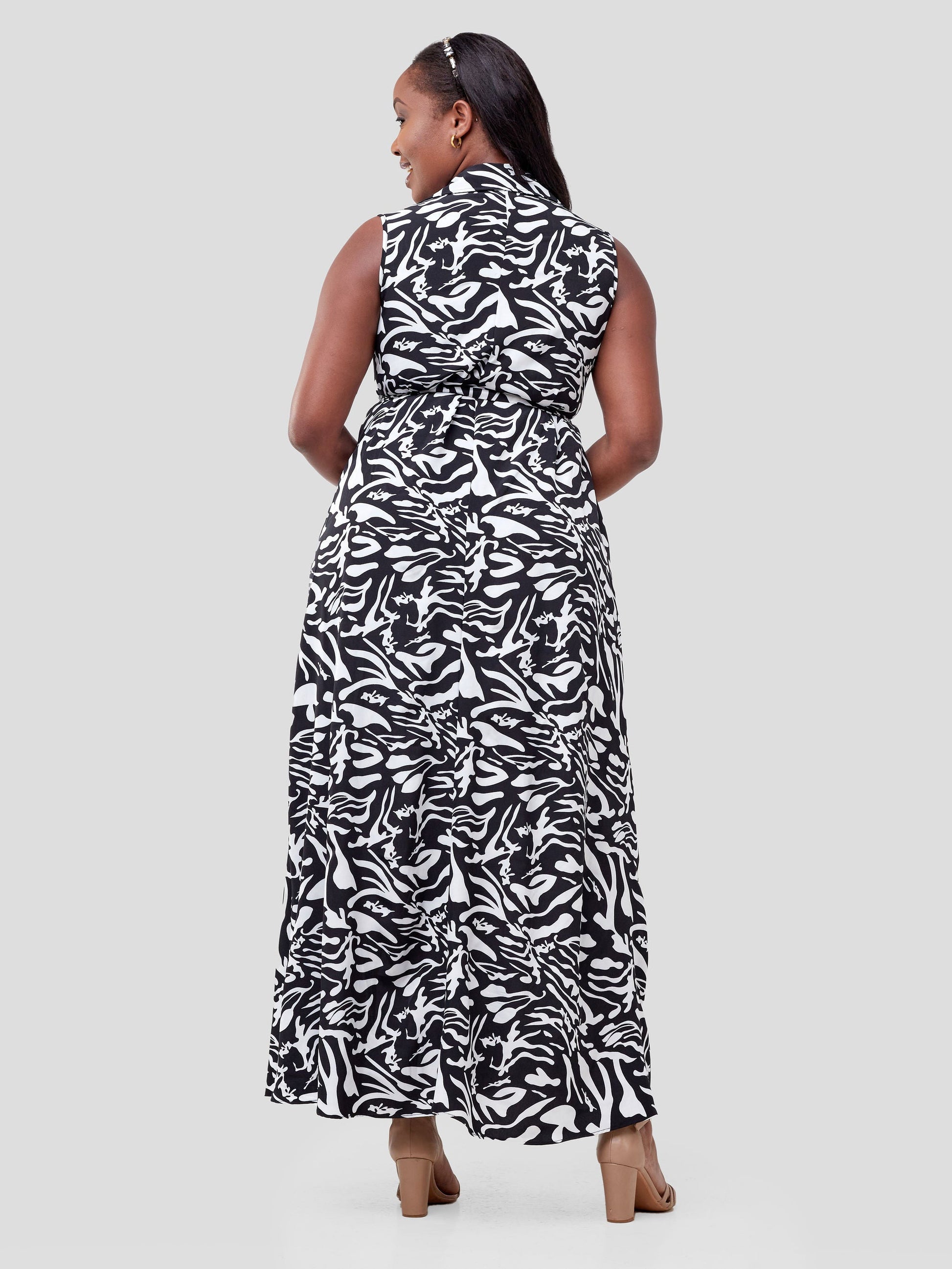 Vivo Zuri Sleeveless Tent Maxi Dress - Black / White Abstract Print